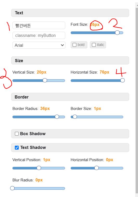 2. 버튼의 글자크기 ( 26 정도 )