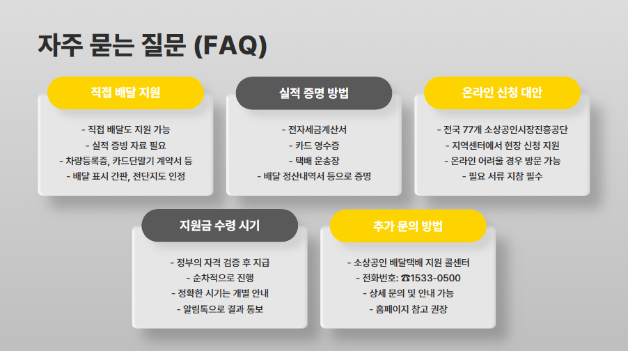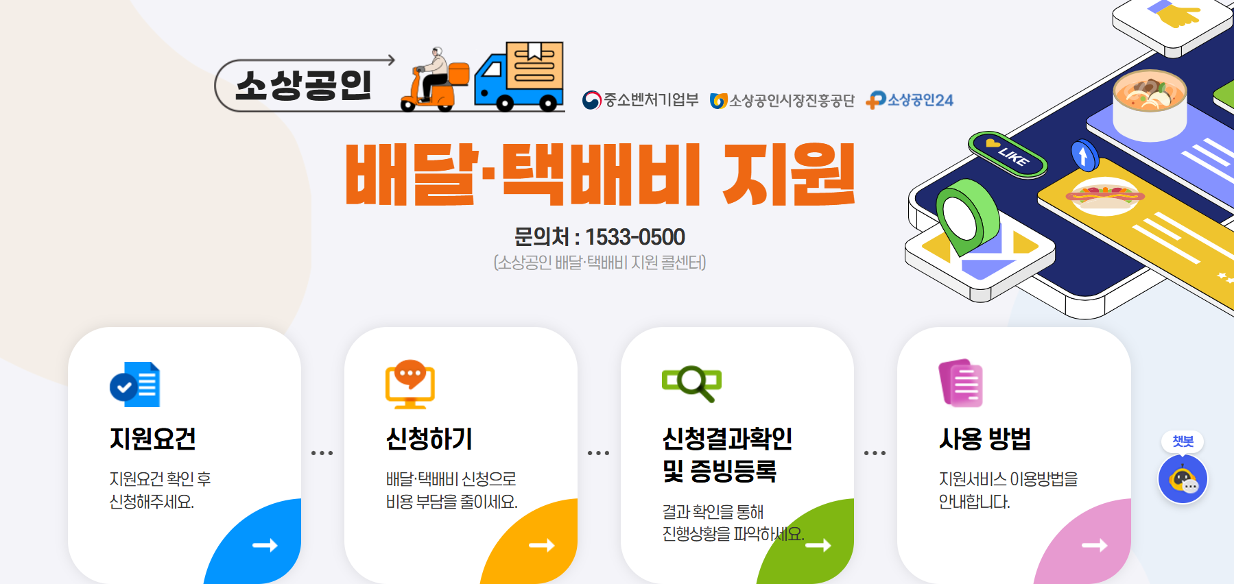 - 온라인 신청: 소상공인 배달·택배비 지원 홈페이지 또는 소상공인 24에서 신청