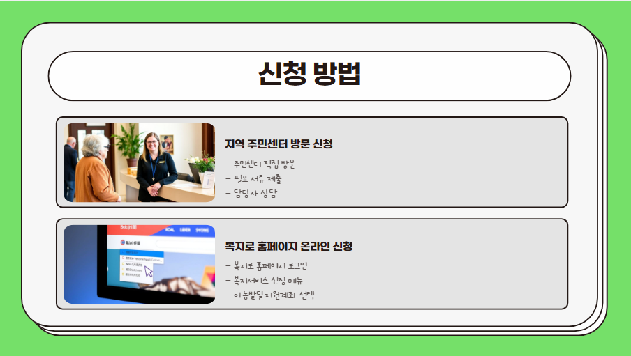 - 초기 상담 및 서비스 신청: 시/군/구에서 서비스 신청 접수