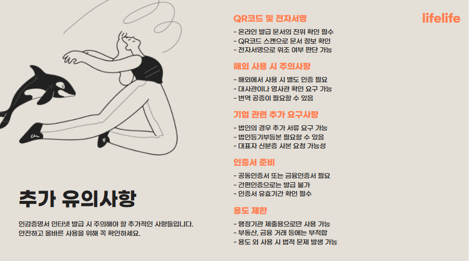 인터넷 발급 시 QR코드 및 전자서명 기능을 활용하여 문서의 진위를 확인하는 것이 중요함
