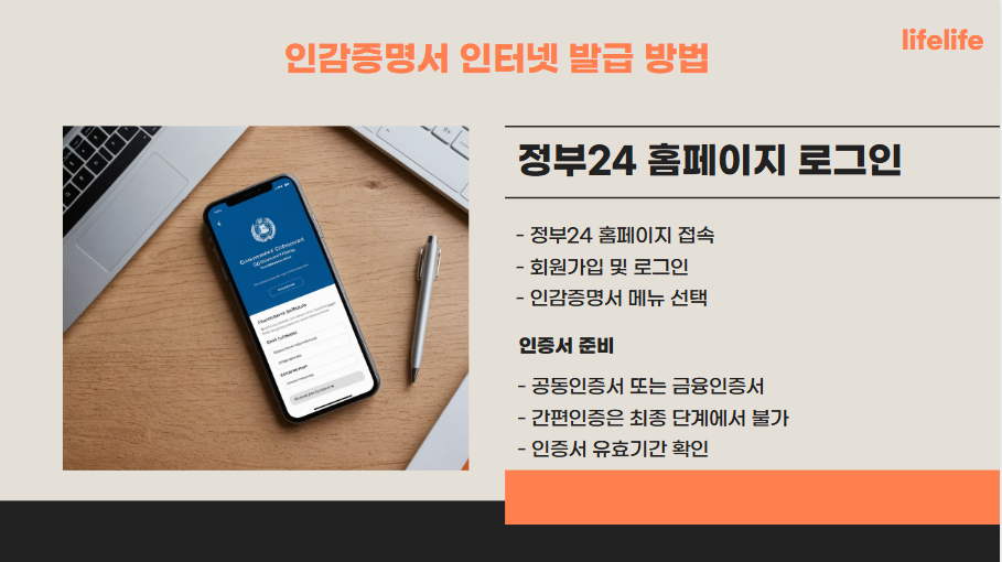 정부24 홈페이지에서 ‘인감증명서’를 검색하면 인터넷 발급 메뉴를 확인할 수 있으며, 전자민원창구에서 즉시 발급이 가능합니다.