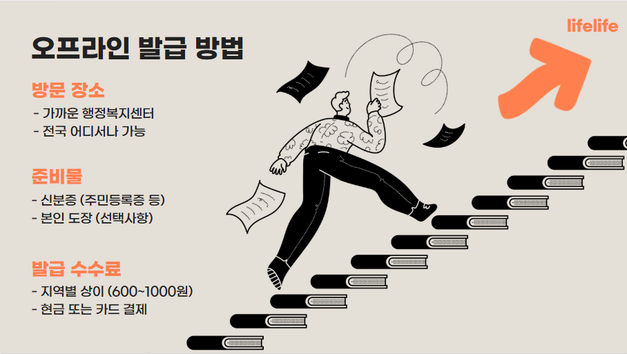 발급 수수료: 지역마다 차이가 있지만 일반적으로 600~1,000원 - 발급 절차