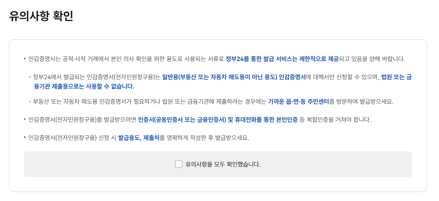 2. 인감증명서 검색 후 유의사항 확인하기