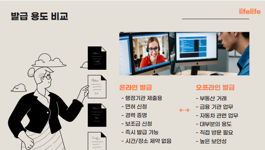 온라인 및 오프라인 발급 용도 비교