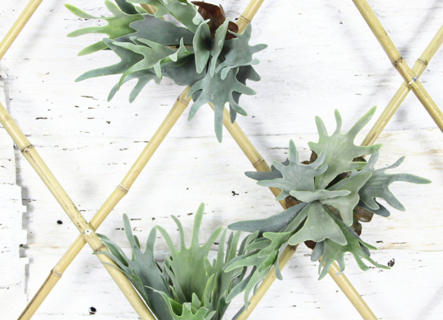 사슴뿔 고사리는 이름 그대로 사슴의 뿔을 닮은 잎이 특징이며, 토분이 아닌 나무판에 부착해 벽에 걸어두는 방식으로 키웁니다.