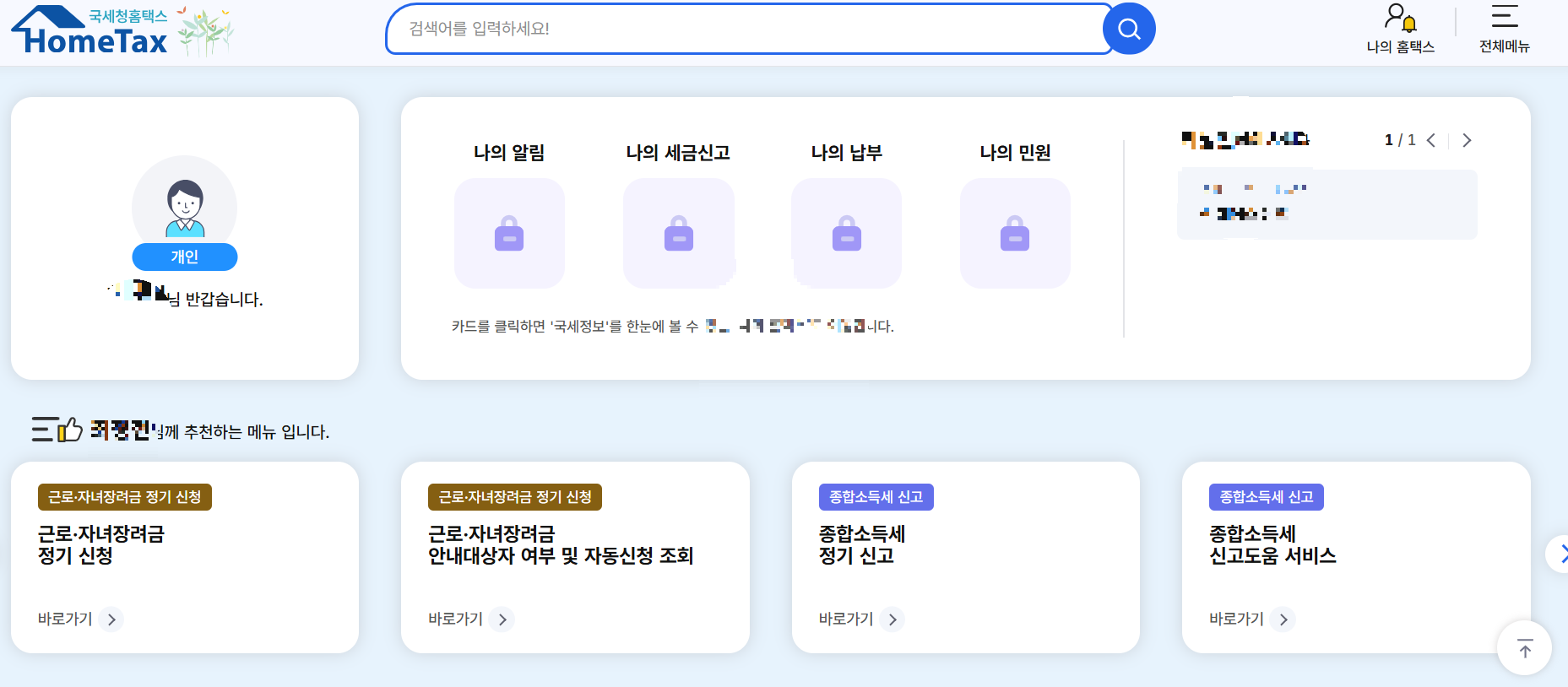 그리고 다시 본인의 공인인증서로 홈택스에 새로 로그인합니다.