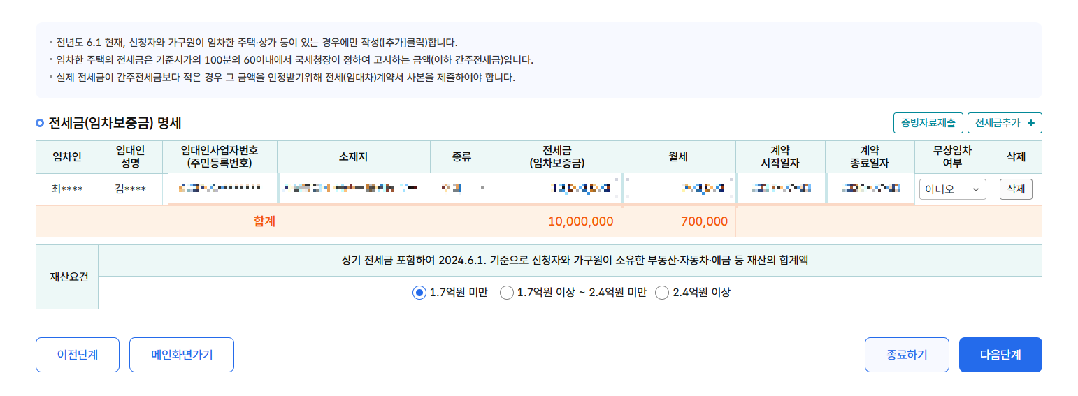 - 2024년 6월 1일 기준 가구 총재산이 2억 4천만 원 미만일 것