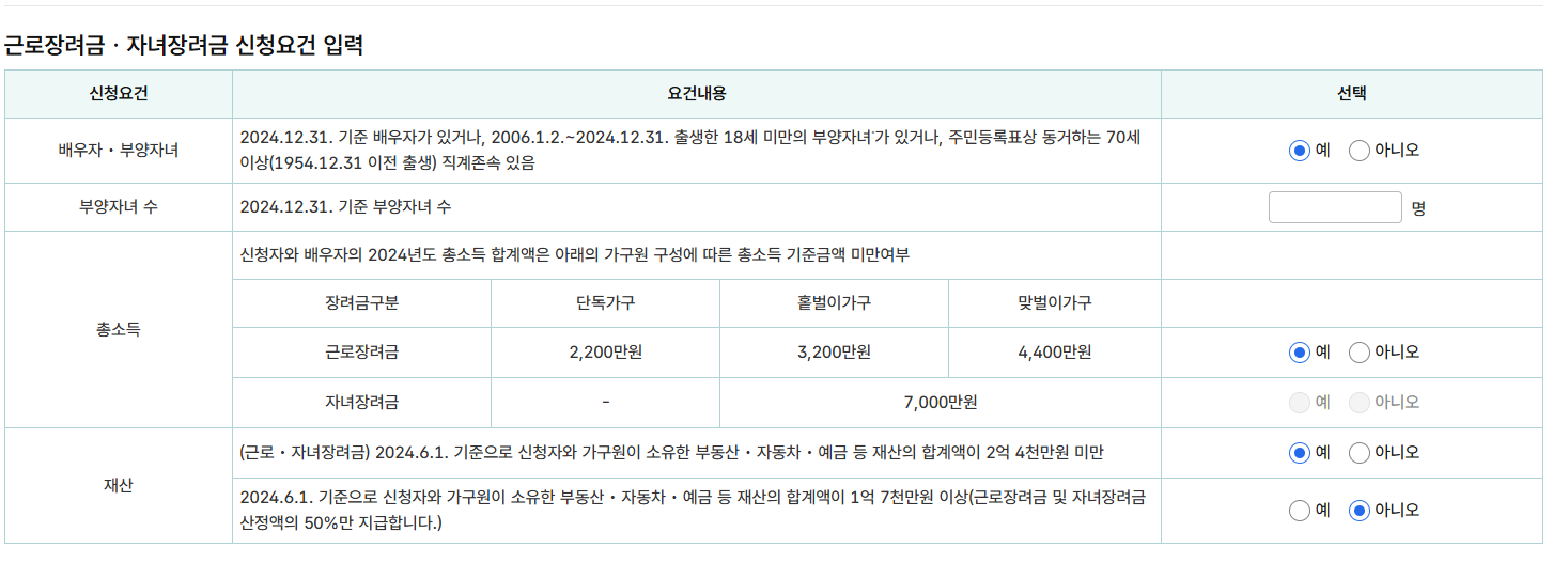 2025 개인사업자 근로, 자녀장려금 신청 자격을 간단히 요약하면 아래와 같습니다.