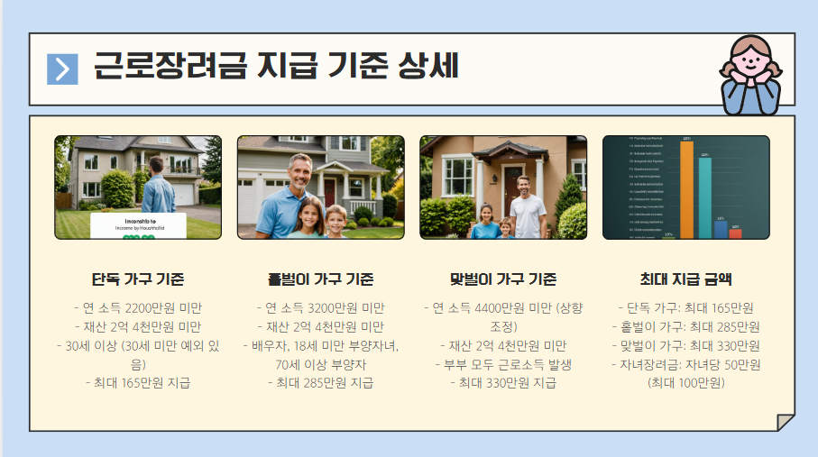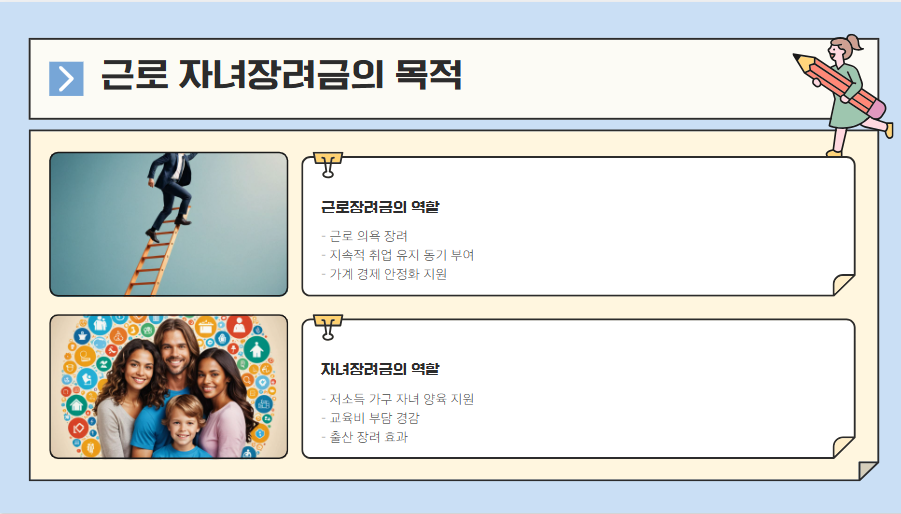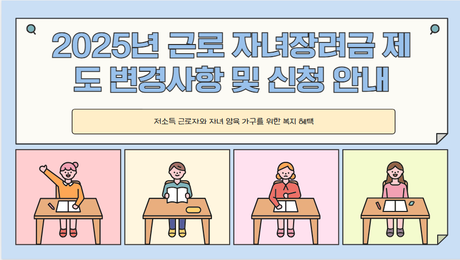 2025년 근로 자녀장려금 제도는 저소득 근로자와 가정을 지원하는 실질적인 제도로, 특히 맞벌이 가구의 소득 기준이 완화되어 더 많은 가구가 혜택을 받을 수 있습니다.