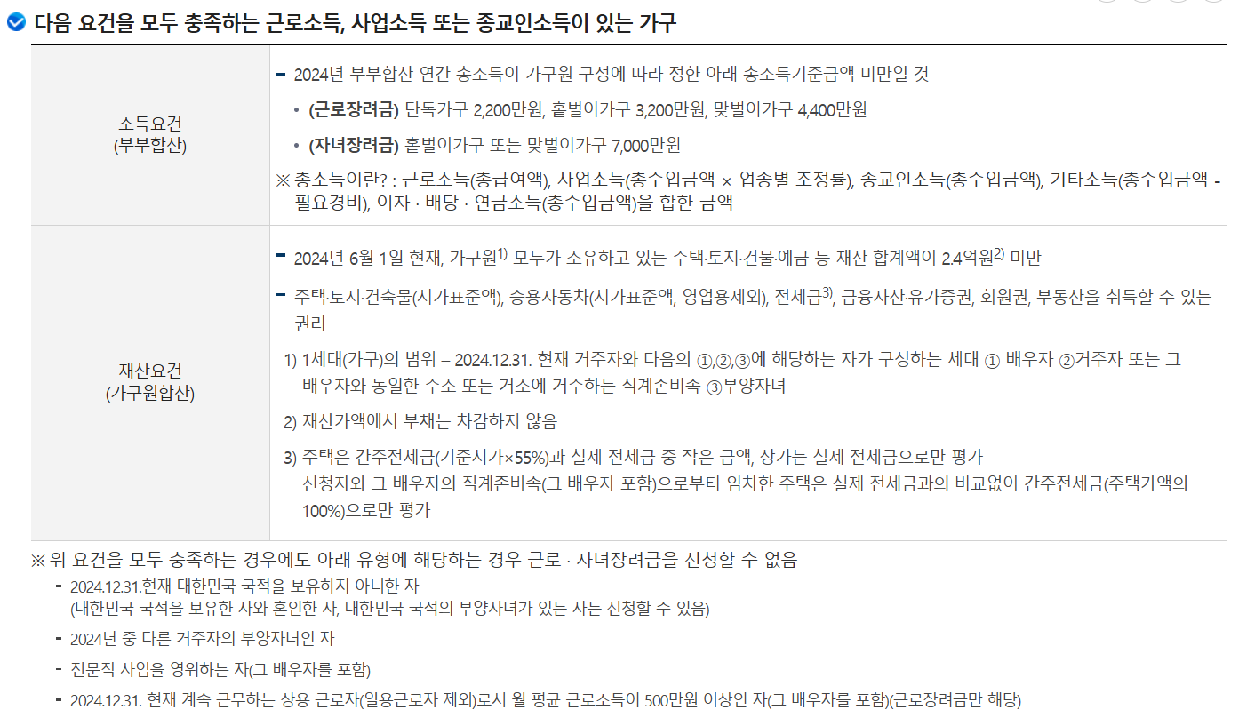 특히 2025년 기준으로 단독 가구의 경우 연 소득 2,400만 원 미만이면 신청이 가능해요. 맞벌이 가구라면 조금 기준이 올라가지만, 대부분의 저소득 근로자에게 열려 있는 제도입니다.