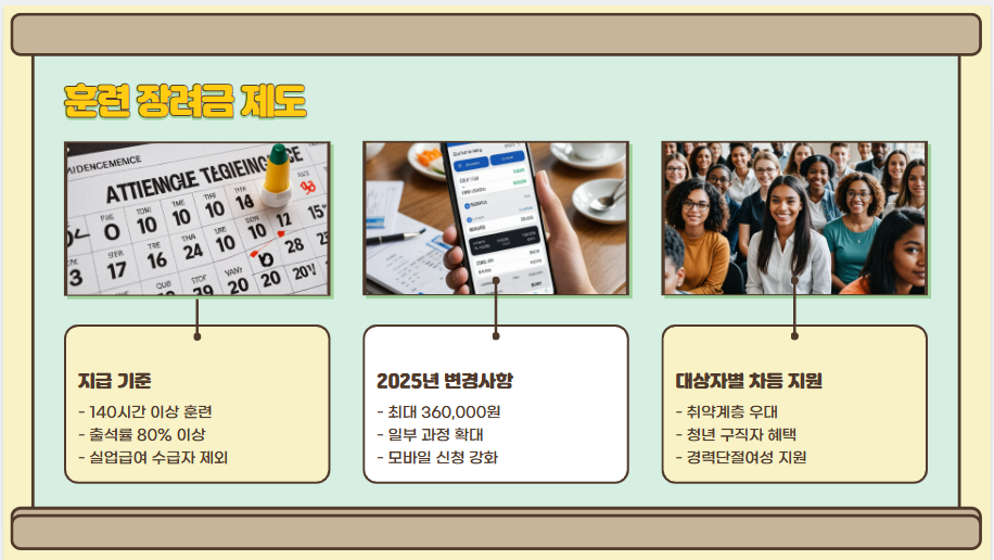 - 일부 과정의 훈련 장려금 상향 (최대 360,000원 지급 가능)