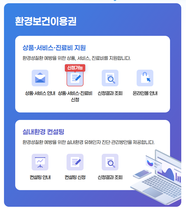 - 진료비 지원: 환경성질환 관련 진료 및 약제비 실비 지원 (예: 알레르기 진단 및 치료)