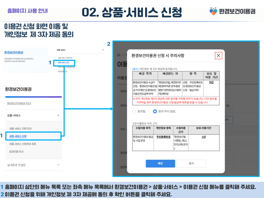 - 환경보건이용권은 예산 소진 시 조기 마감될 수 있으므로 빠르게 접수하시는 것이 유리합니다.