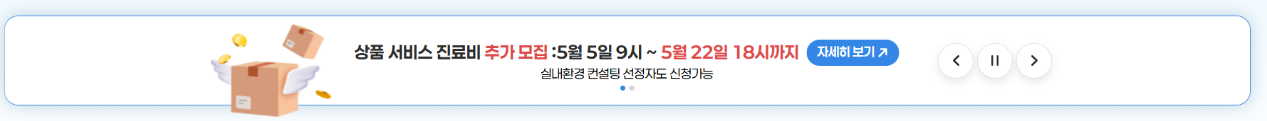 - 메인 페이지에서 ‘이용권 신청’ 또는 ‘실내환경 컨설팅 신청’ 버튼 클릭