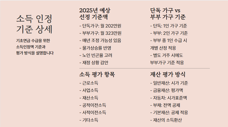 연령 요건이 충족되어도 추가적으로 소득 및 재산 기준을 확인해야 합니다. 단순히 나이만 맞는다고 해서 자동으로 지급되는 것이 아니므로, 자신의 경제적 상황을 정확히 점검하는 것이 중요합니다.