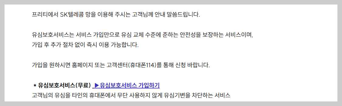 1. 유심보호 서비스 신청방법과 고객센터 글까지 동일합니다.
