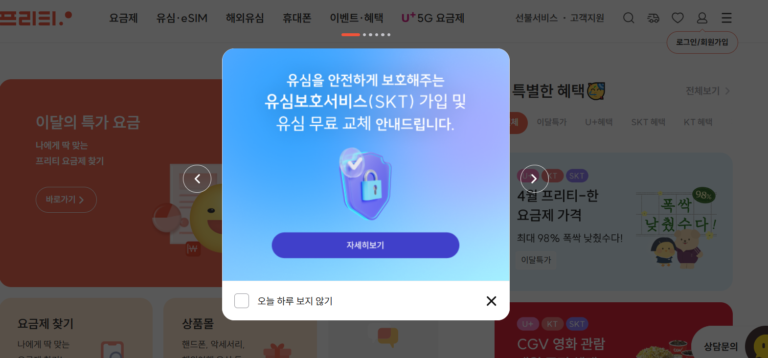 2. 메인화면에 배너 클릭 또는 고객지원 > 공지사항 > 714번 글 [SKT] 유심보호서비스(무료) 가입안내 클릭
