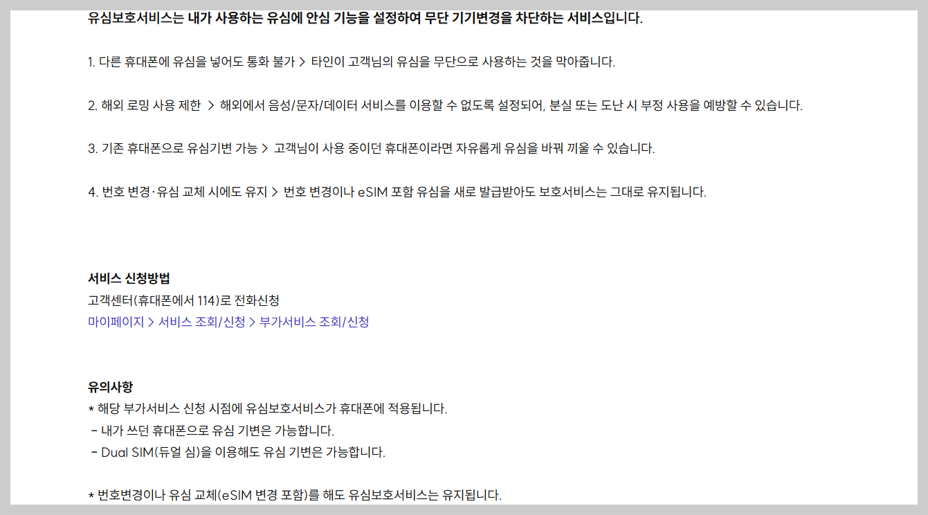 1. 유심보호 서비스 신청방법과 고객센터 글까지 동일합니다.